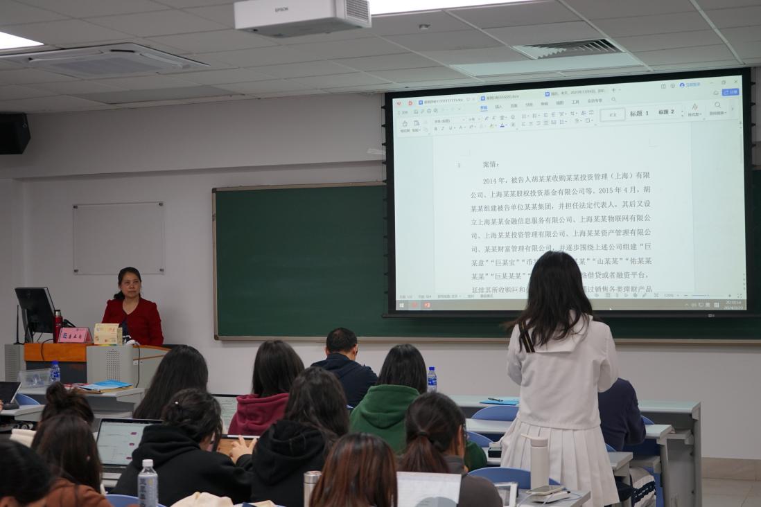 Under the guidance of Tang Yanan, the students actively participated in the discussion, fully utilized divergent thinking, and expressed their own opinions from the perspectives of case facts, legal application, etc. Tang Yanan highly affirmed the enthusiastic speeches of the students and praised their solid legal foundation and rigorous legal thinking. Subsequently, Tang Yanan showed the students the criminal law provisions involved in 8 types of financial crimes and compared them, leading to the core theme of this lecture, "Typological Thinking in Criminal Law".