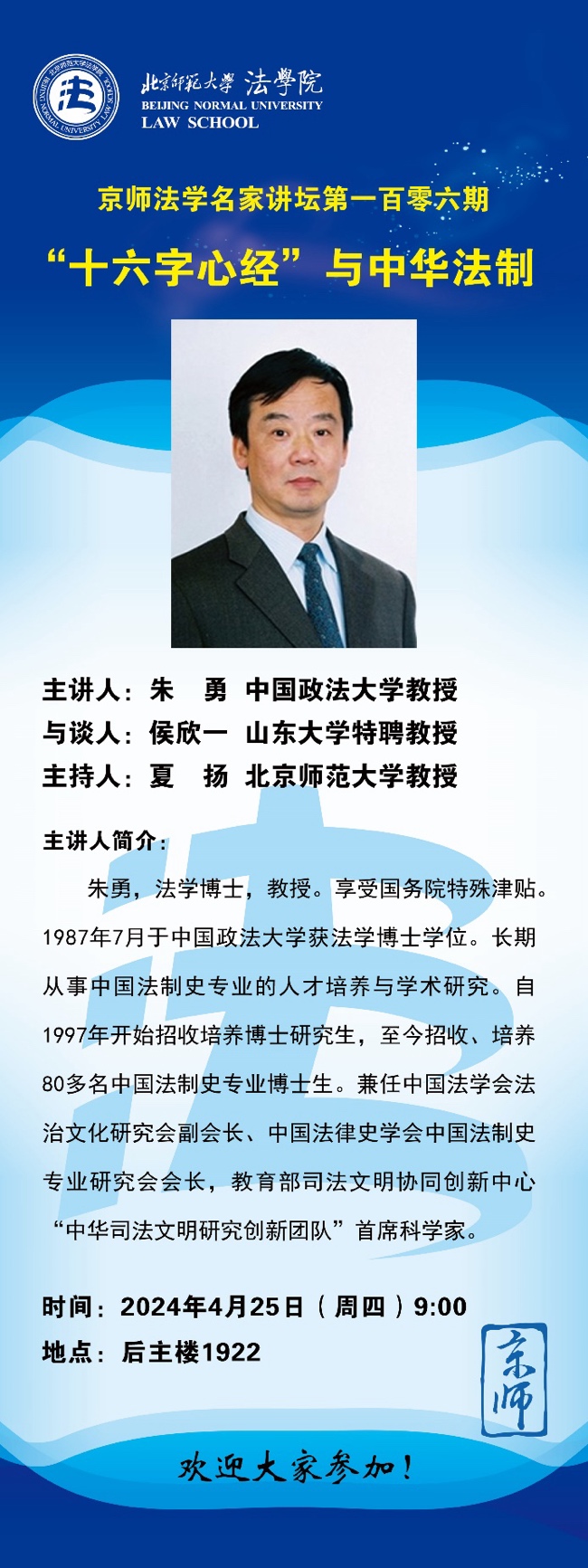 Lecture Preview | The 106th Session of the BNU Distinguished Jurist Lecture Series - "Sixteen-character Maxim and Chinese Legal System"
