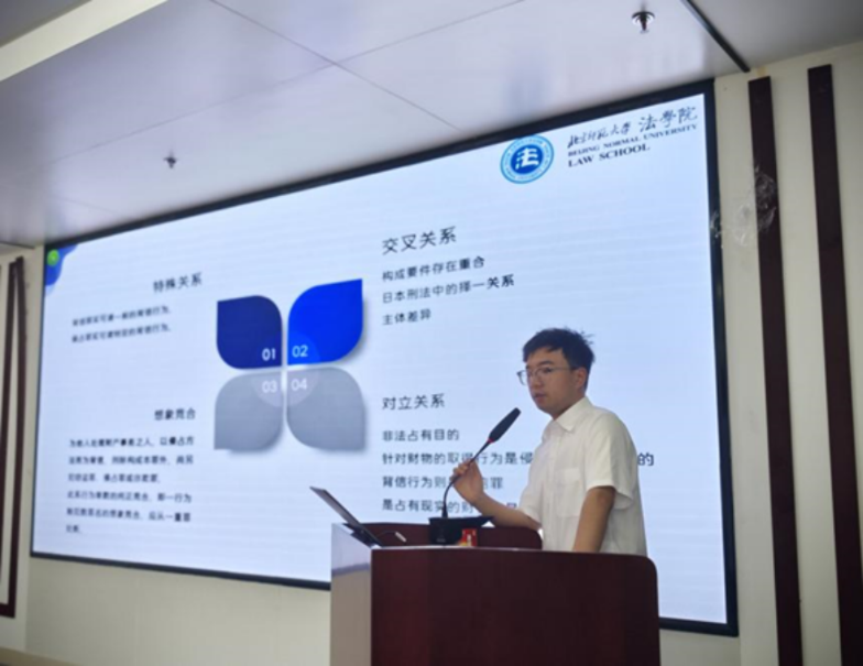 On June 20, the academic presentation of doctoral students in law of Beijing Normal University, titled "Special Seminar on the Criminal Law Amendment (XII)," was successfully held in Room 1822 of the Rear Main Building of Beijing Normal University, Haidian. This event was divided into two thematic sessions: "The Criminal Law Amendment (XII) and the Criminal Law’s Protection for Private Enterprises" and "The Criminal Law Amendment (XII) and the Prevention and Control of Corruption Crimes". Six doctoral students of the Class of 2023 from the Law School of Beijing Normal University reported on their research results on the theoretical and practical issues of the Criminal Law Amendment (XII). Associate Professor Shang Haowen and Teacher Li Di from the Law School of Beijing Normal University served as reviewers. At the same time, four doctoral students from the School of Law of Tsinghua University, the Law School of Renmin University of China and the Law School of Beijing Normal University were invited to parti as panelists. Each of the six presenters based their talks on fully developed academic papers, with each presentation lasting for 20 minutes. Following the completion of the presentations in each session, a series of panel discussions, open discussions, and commentary were conducted. The event spanned nearly four hours, during which each speaker delivered a comprehensive report derived from their respective paper. Both faculty members and panelists had meticulously reviewed the papers in advance and provided in-depth feedback and discussions based on the live presentations, culminating in constructive revision recommendations for the papers of the six speakers.