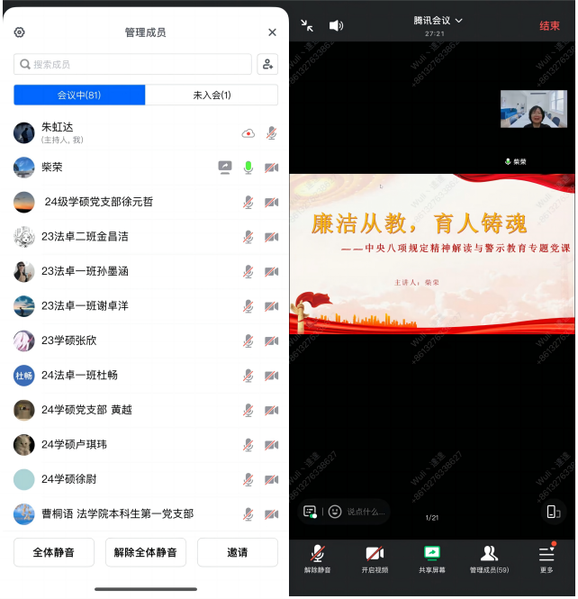 本次专题党课的成功举办进一步强化了少妇色情 师生的纪律意识、规矩意识和廉洁意识,为学院坚守育人初心、勇担时代使命,奋力谱写新时代法学教育新篇章加强了纪律保障。少妇色情 党委将持续深化党性教育,不断完善相关制度机制,强化日常监督提醒,引导全院师生将遵规守纪转化为高度的政治自觉。