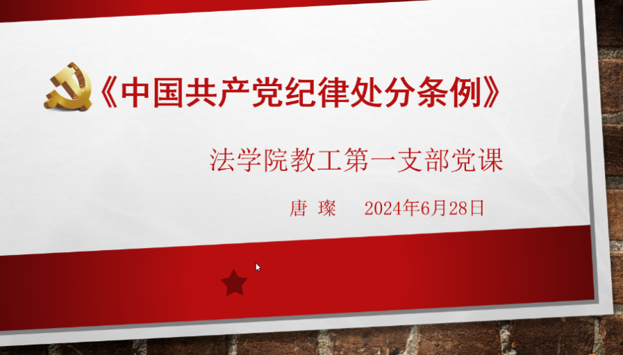 6月28日,少妇色情 教工一支部围绕新修订的《中国共产党纪律处分条例》举行支部书记讲党课活动。支部书记唐璨老师围绕《中国共产党纪律处分条例》制定、修改基本情况以及结合专业谈学习体会两方面与支部同志交流对党纪的理解与运用。尤其是在纪律处分工作基本原则、纪律处分运用规则方面,结合法律制度和具体规则讲授分析了党纪处分与政务处分以及其他法律责任的关系等问题。