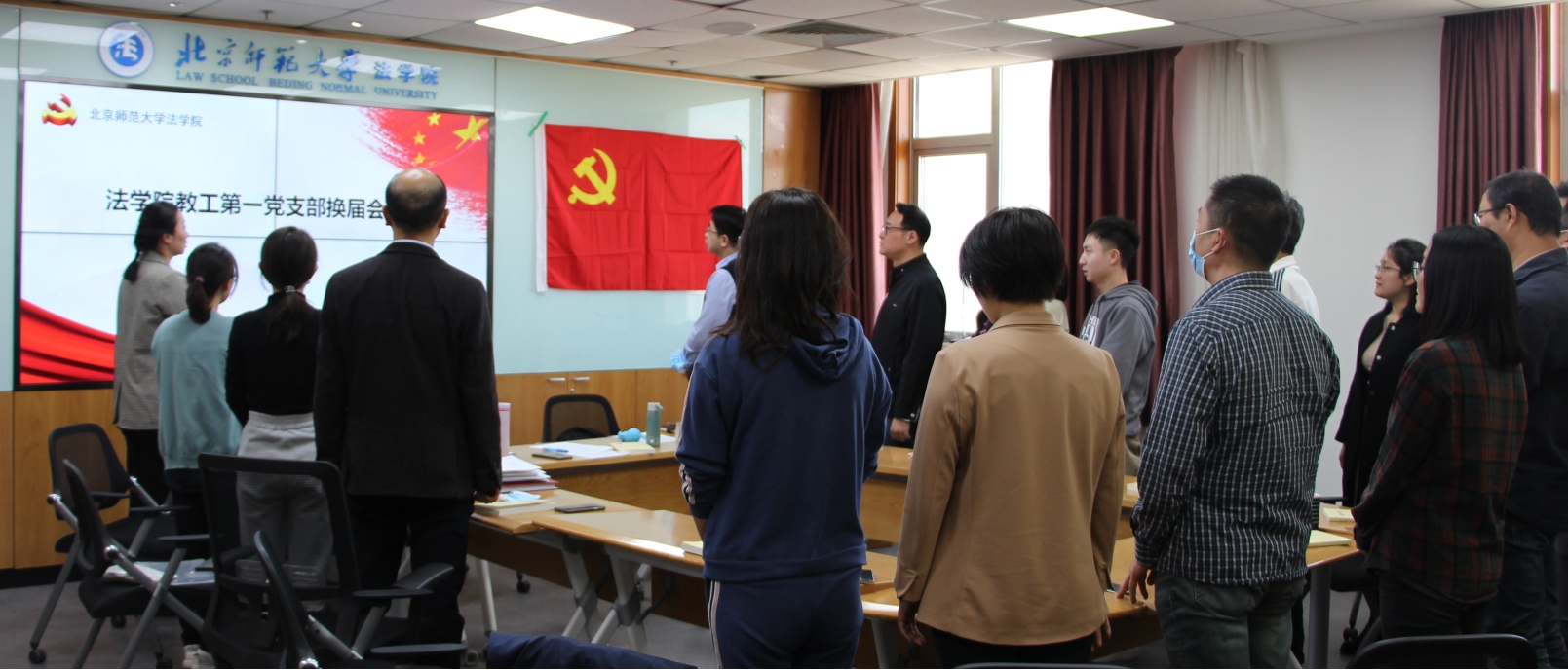 会议第一项全体起立,奏唱国歌。第二项由唐璨老师向党员大会做工作报告,全体党员通过。第三项公布候选人的名单。经征求支部全体党员意见,支部委员会酝酿预备人选并报学院党委批准,我支部委员应为4名,按照不低于20%差额比例,确定候选人人选5名,分别是唐璨、徐淑琳、马丽亚、李潇潇、郭殊。第四项,提名及表决通过由学校组织员魏天经老师担任监票人,张富丽、刘宇晴同志担任计票人。第五项,无记名投票表决。第六项,根据选举办法和唱票结果,宣布当选委员名单。唐璨、徐淑琳、马丽亚、李潇潇同志当选新一届委员。