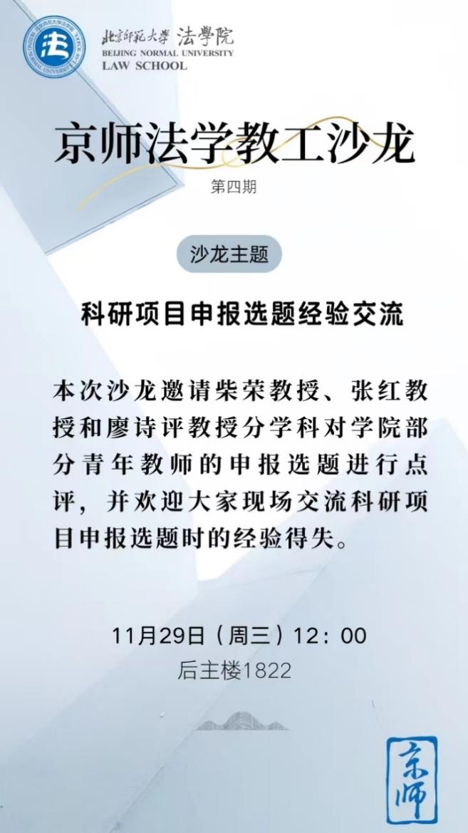 “京师法学教工沙龙”第四期《科研项目申报选题经验交流》成功举办