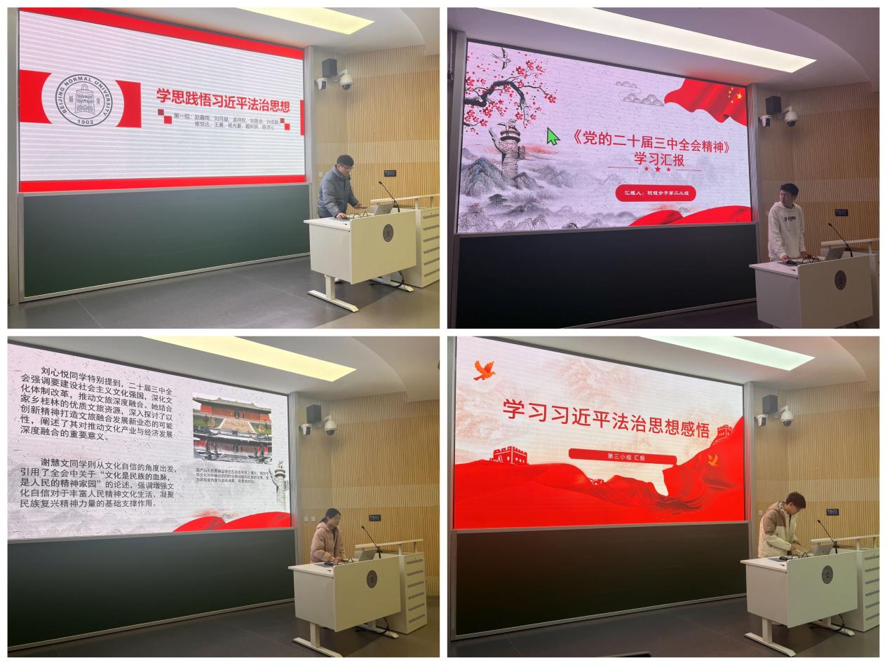 集体研讨会围绕党的二十届三中全会精神、习近平法治思想、“四有”好老师重要讲话精神等主题展开,要求积极分子们结合学院实际情况,结合专业特点进行研讨。