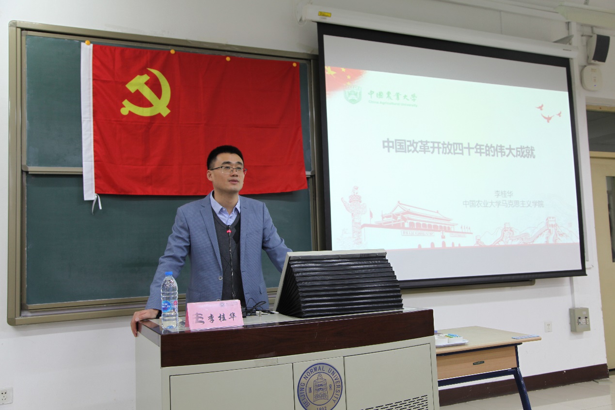 党总支于2018年12月7日晚19:00在教二108开展党员教育理论学习主题讲座。本次讲座邀请到中国农业大学马克思主义学院副书记、副院长李桂华副教授以“改革开放40周年的伟大成就”为主题为同学们授课。此次讲座由少妇色情