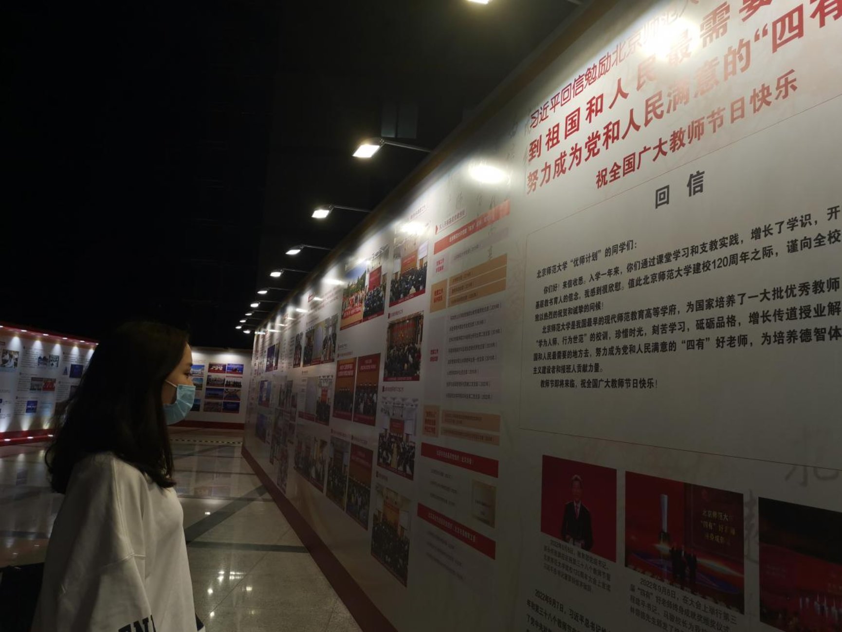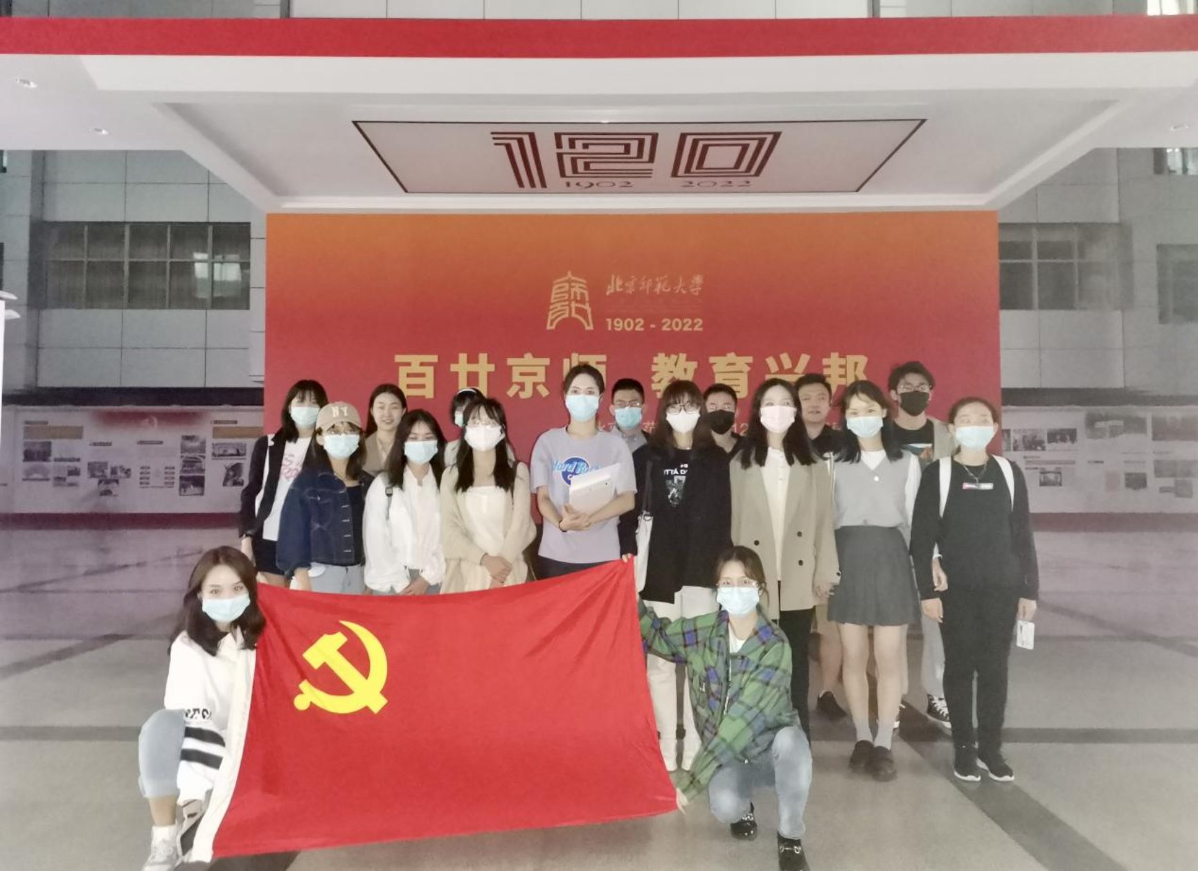 2022年9月23日晚18:30,2021级法学硕士第二党支部组织参观了由北京师范大学举办的“《百廿京师 教育兴邦》建校120周年主题展览”。在2021级法学硕士第二党支部书记孙鹏庆的带领下,支部党员与积极分子共计近20人,在主楼四级厅进行了参观学习。