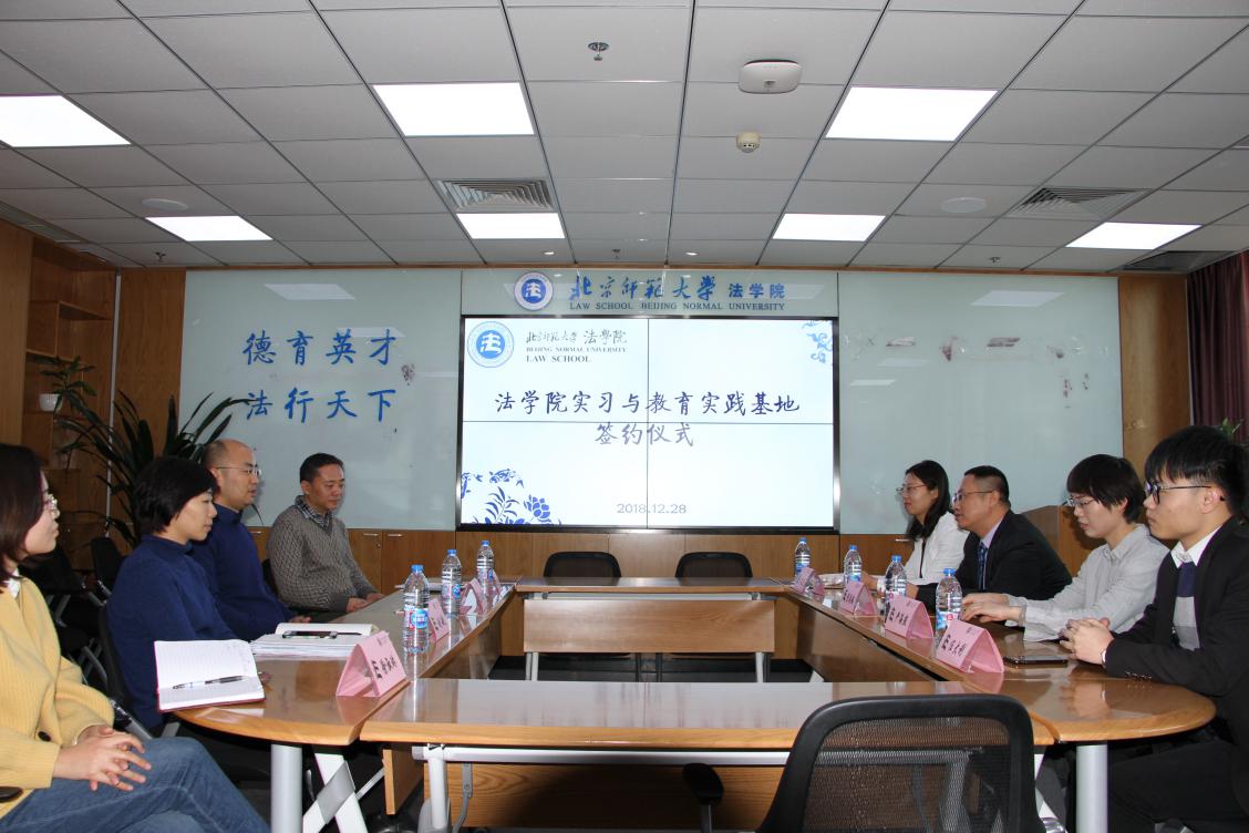 2018年12月28日下午,我院党总支书记梁迎修教授、副院长李滨教授、办公室刘航主任、实习工作办公室徐淑琳主任于1922会议室与北京问方执象律师事务所展开座谈并签署“共建实习与实践教学基地”协议。北京问方执象律师事务所訾英韬主任律师、严海燕律师、吴晨凌律师、任大利律师参加了本次签约仪式。