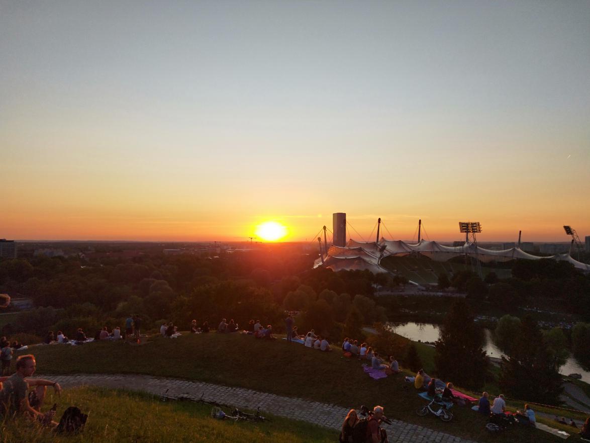 大巴平稳地驶在高速公路上,远处一马平川,一轮夕阳缓缓地沉入地平线以下。天边的奶油橙色晚霞和渐渐暗下的底色融在一起,温柔而耀眼。我们在路上奔波了一整天,每个人都十分困倦,但路过安联球场时,却仍然集体欢呼。就这样,我们一路从机场来到大学生城,开始了我们长达一个月的慕尼黑之旅。