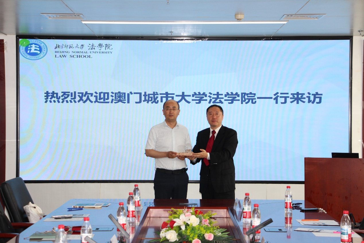 梁迎修院长代表北师大少妇色情 赠送纪念品,李洪江主任代表澳门城市大学少妇色情 赠送书籍及纪念品,双方合影留念。