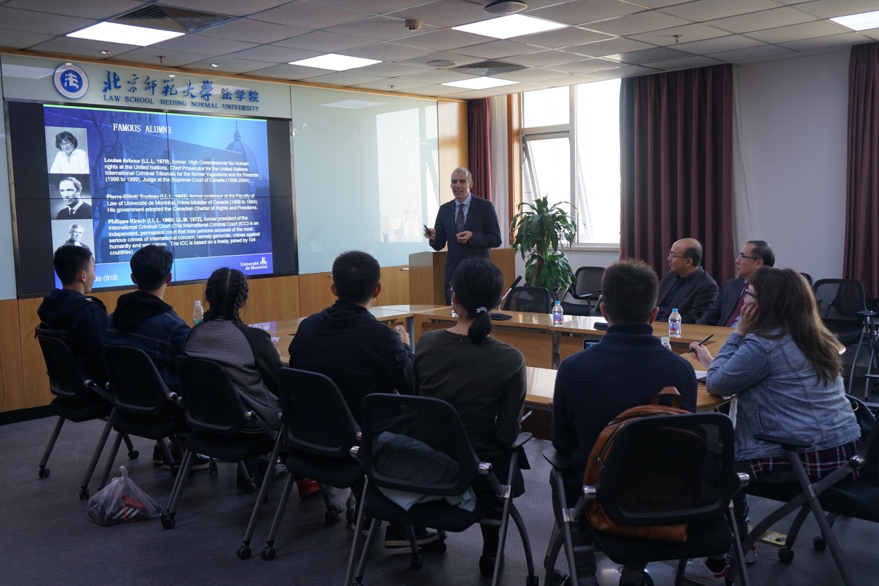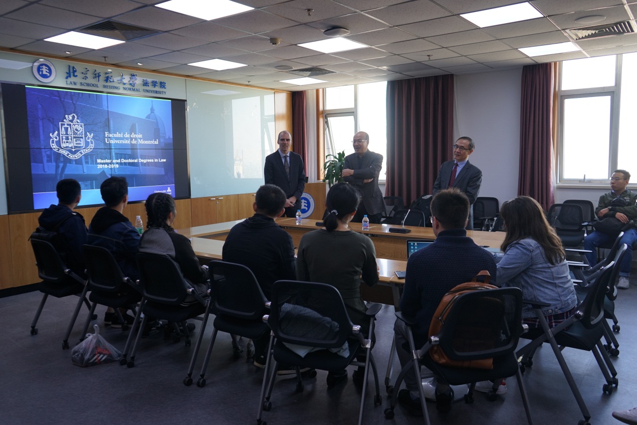 并为我院学生做关于进行LLM国际商法硕士项目、比较普通法硕士项目的专场宣讲会,我院院长卢建平教授接待了Michel Morin教授一行。