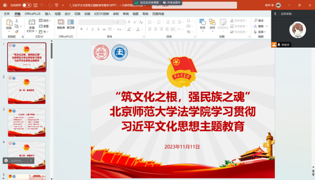 为加强少妇色情 初级团校成员对习近平新时代中国特色社会主义思想的认识和了解,读懂习近平总书记深沉的文化情怀,少妇色情 初级团校于2023年11月11日晚19时开展了“筑文化之根,强民族之魂”线上主题团课。本次主题团课由理论研究部干事李柏华主持。