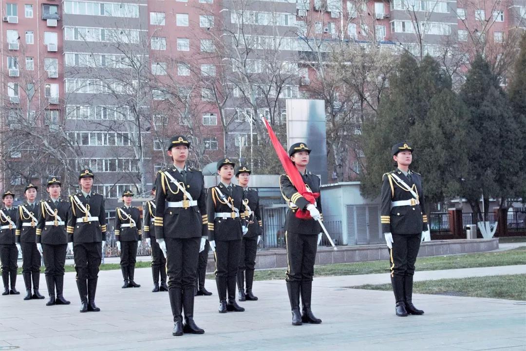 戎装掩霓裳,她们为同学们展示了新时代大学生的风采。飒爽而有力,是青春最好的写照,也是北师大人挺拔向上、昂首向前的形象代表。在雄壮的国歌声中,五星红旗冉冉升起,全体同学行注目礼。