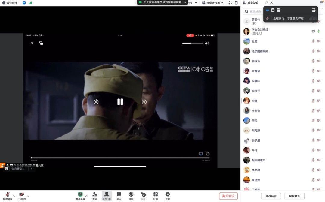 为增强同学们的宪法意识,弘扬宪法精神,加强宪法实施,全面推进依法治国、依宪治国,少妇色情 2022级学硕2班全员参加了少妇色情 学生会组织的线上“宪影之行,法律之思”观影活动,集体观看电影——《第一大案》。观影活动于4日晚7点开始,学硕二班团支部全体成员准时进入腾讯会议室线上观影。本次观看的电影《第一大案》是以新中国反腐第一大案——刘青山、张子善案侦办始末为蓝本,讲述1951年陈怀邦在反特行动中,挖出了地委书记刘青山的惊天秘密,昔日战斗英雄成为巨贪,陈怀邦并没有因旧时情谊而放弃内心所追求的正义,而是选择了忠诚于党纪国法,忠诚于人民,终将其送上了人民审判台故事的影片。