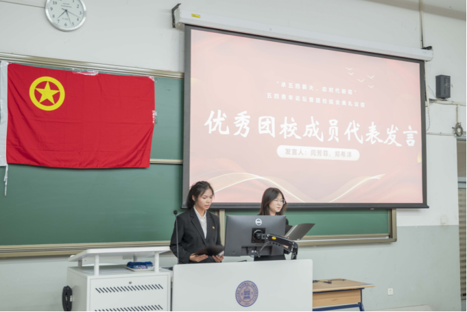 闫芳菲、郑希洋作为优秀团校成员代表进行了精彩的发言,她们回顾了本年度团校的精彩瞬间,讲述了团校带给她们的收获,同时也确立了新的目标,并鼓励同学们在实现中国梦的生动实践中放飞青春梦想,在为人民利益不懈奋斗中书写人生华章。