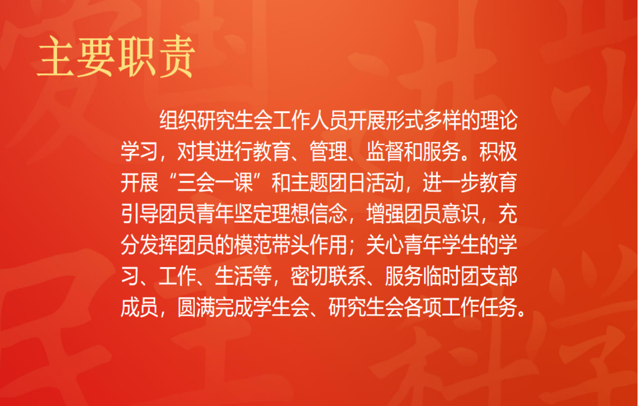 第二,各团支部书记向各支部成员明确了此次成立少妇色情 研究生会临时团支部的目的与主要职责(如下图)。