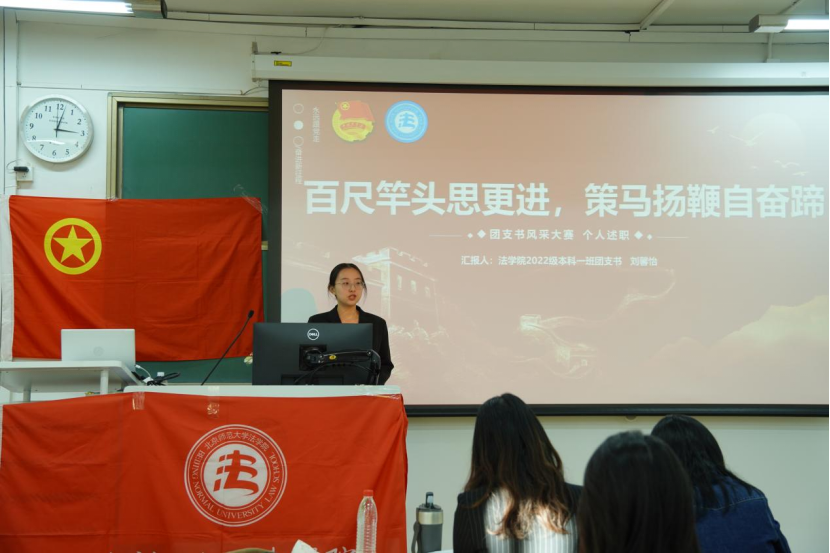 主持人介绍大赛流程后,比赛正式拉开帷幕,九位团支书按照抽签顺序依次开始述职和现场答题。