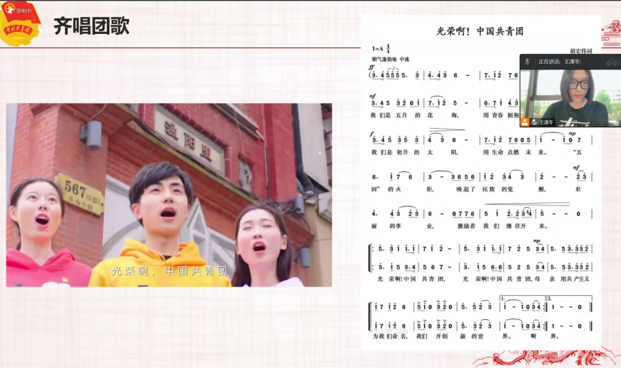 接下来,全体到会人员齐唱团歌《光荣啊,中国共青团》。