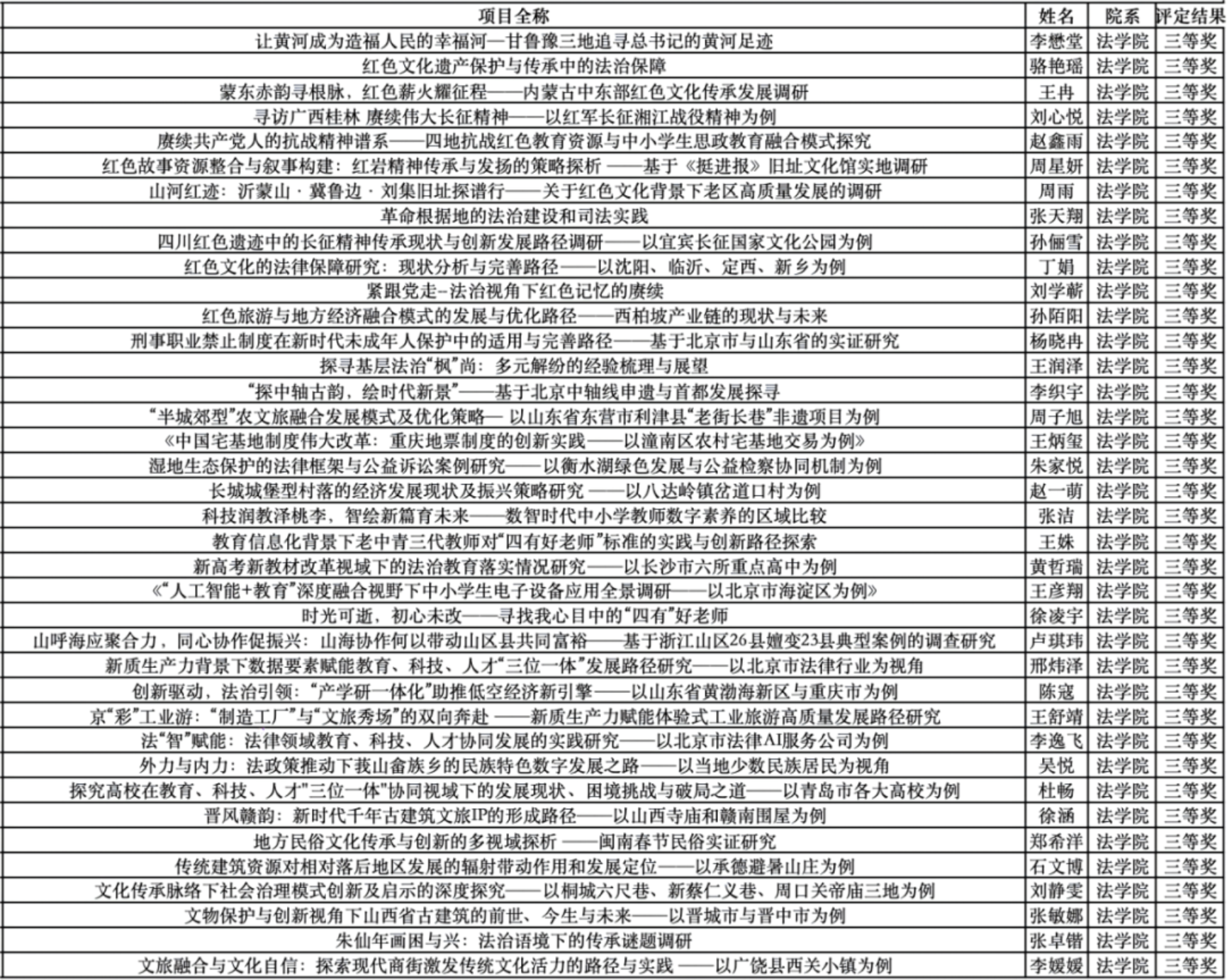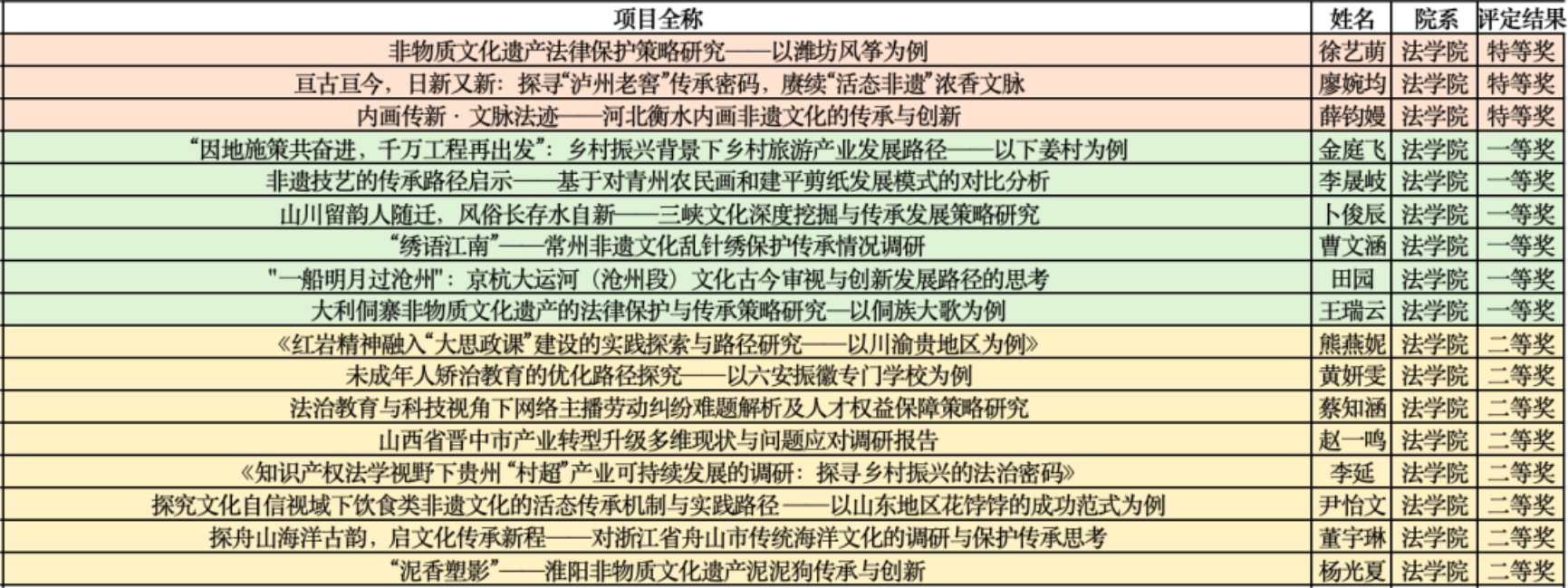 每一份荣誉背后,都凝结着法学青年扎根大地的赤子情怀。获奖团队提交的调研报告既彰显扎实的法学素养,更体现强烈的现实关怀,聚焦基层治理创新、乡村振兴法治保障、民生权益维护等重大议题,形成了兼具理论深度与实践价值的调研成果,为破解社会发展难题提供生动方案。