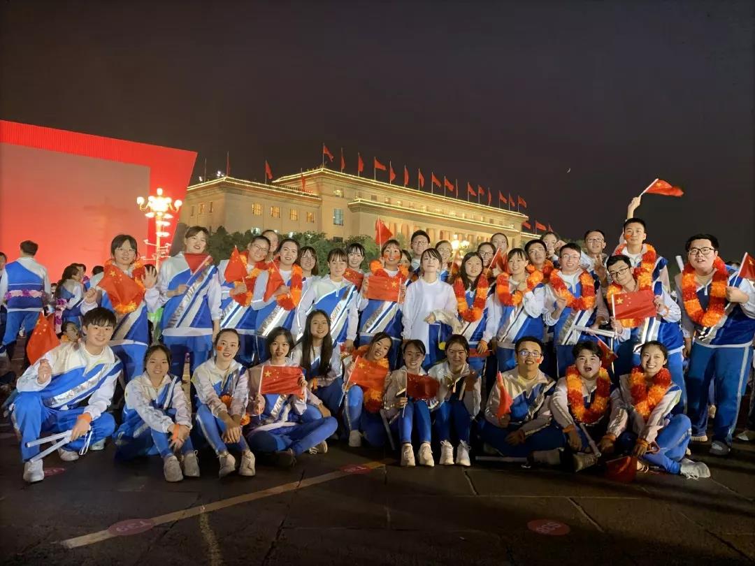 18名同学参与了夜间进行的群众联欢及烟花表演。海淀区共近3000人,在天安门城楼右前侧区域进行表演,所有人共同配合,成就了一场自由欢愉的联欢演出。