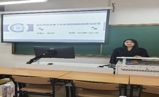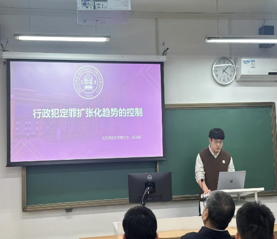 2024年11月17日下午,京师法学博士生学术报告“社区矫正与行政犯的前沿问题研究”在海淀校园教四111顺利举行。本次学术报告,由我院硕士研究生陈小雨主持,由我院2023级2名博士研究生进行汇报,邀请了我院吴宗宪教授、黄晓亮教授作为点评人,同时邀请了我院4名博士研究生作为与谈人。2位报告人的汇报都是基于已完成的学术论文展开,每人报告时间为30分钟,每位报告人汇报结束后,依次进行与谈和点评。每位报告人都结合自己的论文进行了充分汇报,两位教师和各位与谈人都在会前认真阅读了报告人提交的论文,结合现场报告内容进行了细致的点评或与谈交流,并对2位报告人的论文提出了详细的修改建议。