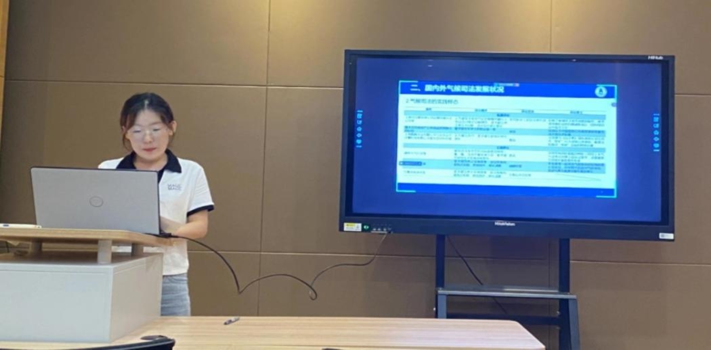 主讲人刘瑞博士生围绕“气候司法的中国范式:回应型司法的构建”主题展开报告。报告主要内容指出:气候变化既是全球危机又是长期挑战,积极应对气候变化问题是全球共识和大国竞争的焦点。气候变化诉讼的发展关涉中国“双碳”目标的实现、应对气候变化新路径的探索、全球气候治理话权的提升及企业抗气候风险能力的增强,在中国具备迫切的发展需求。但当前中国气候政策落实型司法未积极主动回应社会需求,立案难、审理难的现象客观存在。司法不足的深层次原因是立法滞后、行政保守、司法消极。回应型司法作为“独善其身”与“兼善天下”并举的有限能动司法,可对中国气候司法的不足进行修正与限制,充分发挥法院在司法解释、案例指导等方面对气候变化诉讼的助推作用;同时也可回应国际气候争议,增强中国化解外来气候政治风险、参与国际气候变化司法的能力。具体而言,回应型气候司法的基本原则包括在适当能动与适度限缩之间保持理性均衡,在规则之治框架内回应气候治理纠纷;实践面相包含个案审理的司法回应和典型案例的示范宣传;能力建设要求在个人层面上需抓实法官能力提升、在机制层面上应优化司法资源配置。