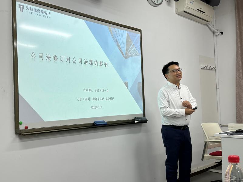 11月21日下午,少妇色情 “京师法学大讲堂第32讲”于海淀校园教二206顺利举行。本次讲座主题为“公司法修订背景下公司治理热点问题研讨”,由天册(深圳)律师事务所高级顾问曾斌博士主讲。少妇色情 贺丹老师主持讲座;孙新宽老师、艾惠子老师与谈。