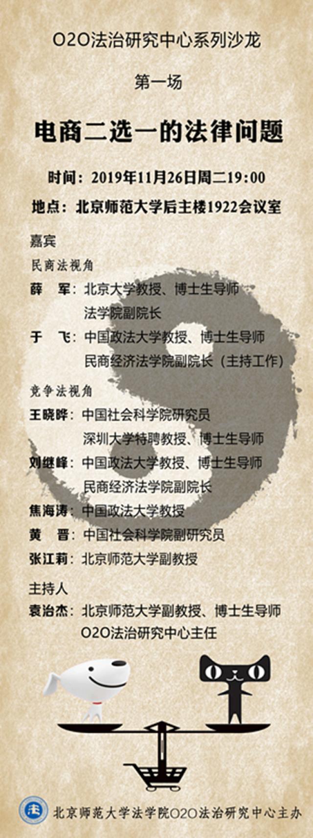 【11.26】O2O法治研究中心系列沙龙第一场:电商二选一的法律问题