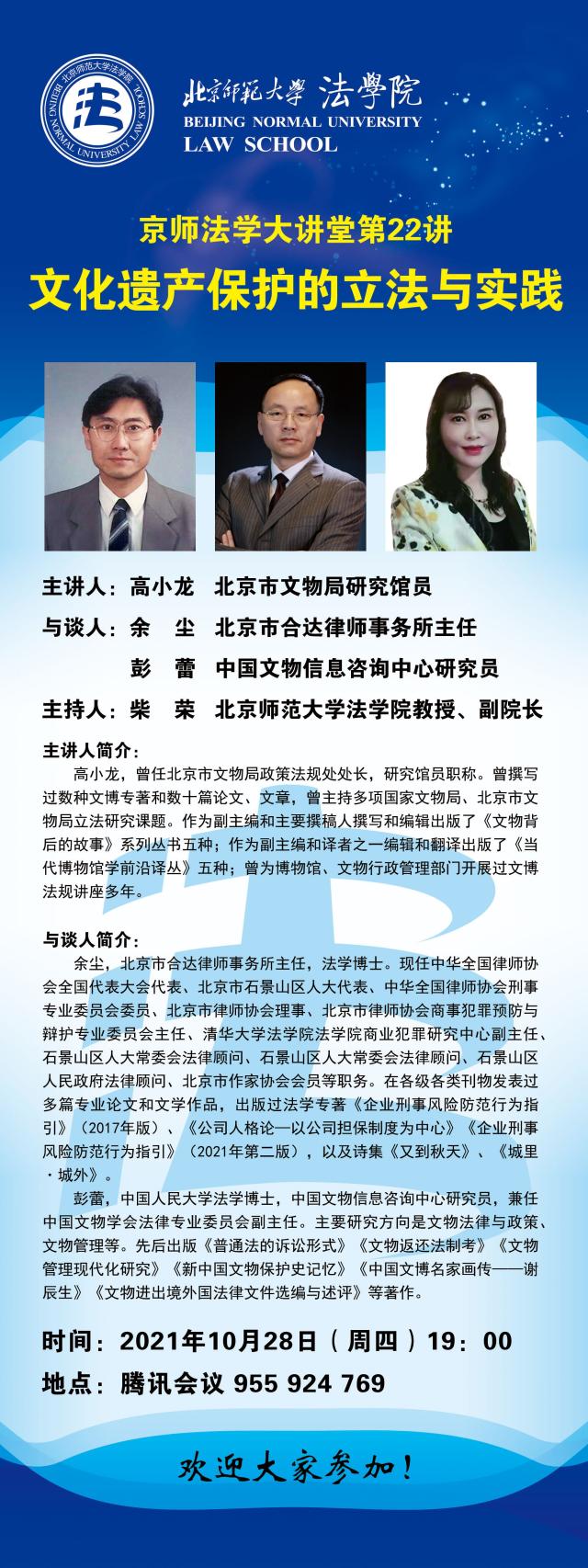 【10.28】京师法学大讲堂第22讲——文化遗产保护的立法与实践/主讲人:高小龙