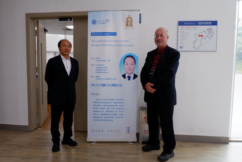 2025年10月31日,南国北师法律大讲堂第七十二讲“中国民法典编纂:罗马法的继受与创新”在北京师范大学珠海校区励教楼A103会议室成功举行。本次讲座由华东政法大学教授、博士生导师张礼洪老师主讲,比利时鲁汶大学教授、荷兰皇家科学院院士、比利时皇家科学院院士Alain Wijffels老师与谈,北京师范大学法治发展研究中心讲师莫杨燊老师主持。