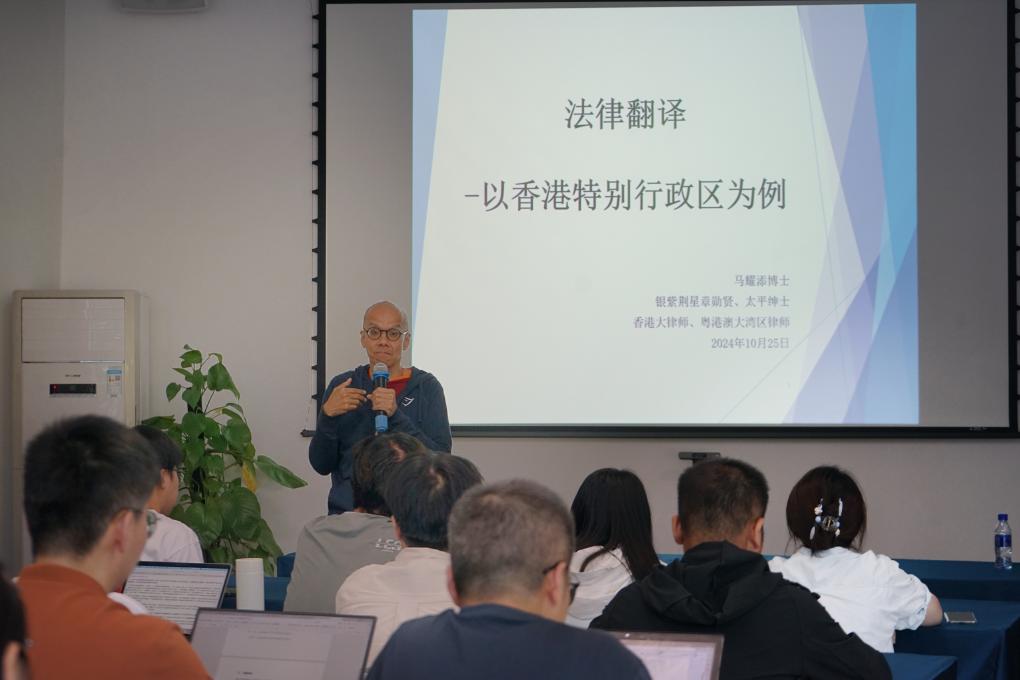 马耀添教授于1998年获委任太平绅士,2015年获颁授香港银紫荆星章,2017年获选香港翻译学会荣誉会士。他是中国法学会理事、香港董事学会资深会员,具备粤港澳大湾区律师、香港大律师执业资格,专注各类争议解决领域,同时积极参与社会公共事务。在讲座开始前,赵文宗教授对马耀添教授表示热烈欢迎,衷心感谢了他对此次讲座的精心准备,并简要介绍了马耀添教授的研究专长和个人成就。