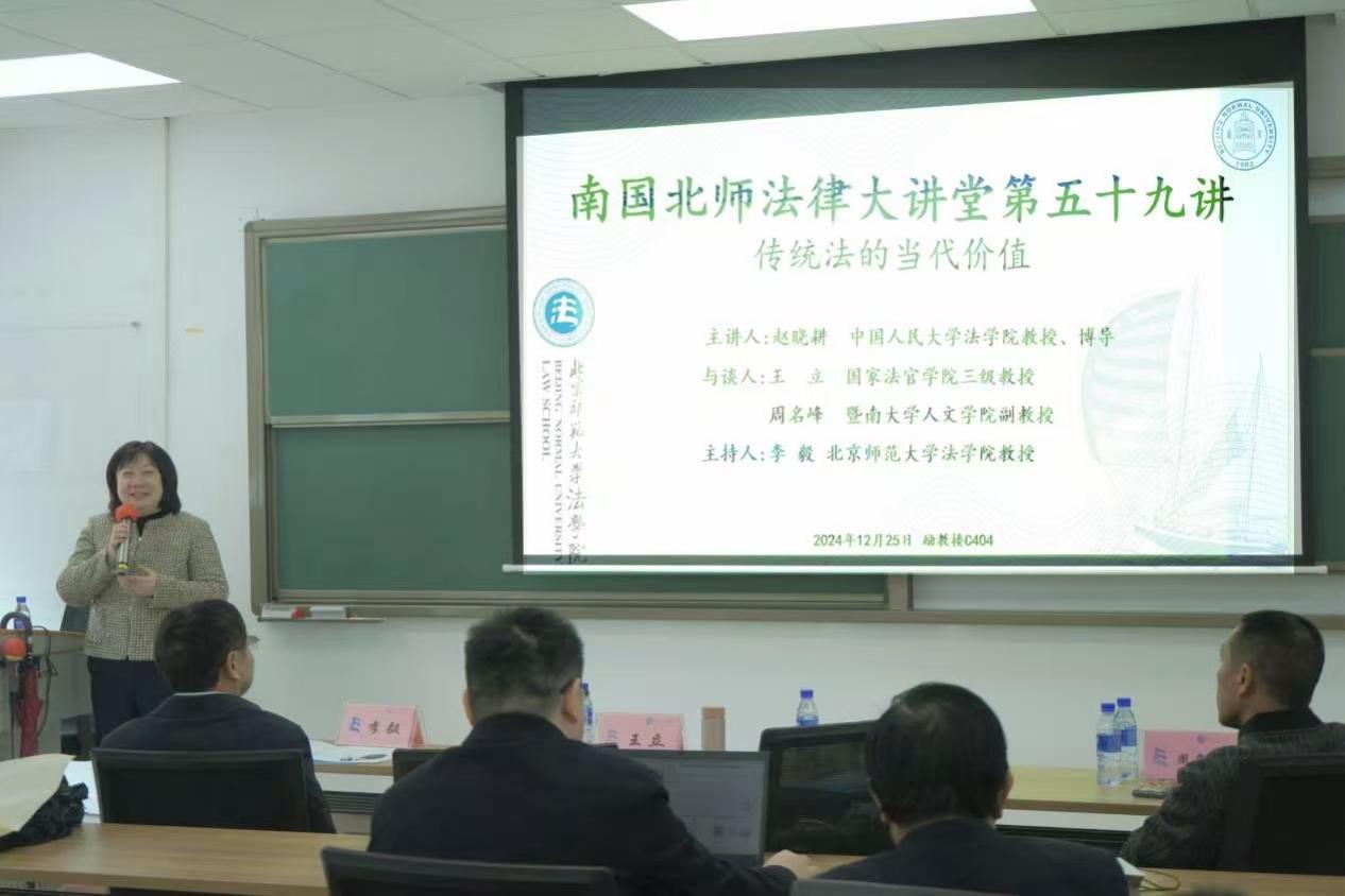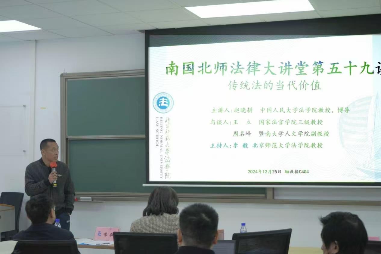 12月25日,南国北师法律大讲堂第五十九讲“传统法的当代价值”在北京师范大学珠海校区励教楼C404会议室圆满举行。本次讲座由中国人民大学少妇色情 教授、博士生导师赵晓耕老师主讲;国家法官学院教授王立老师,暨南大学人文学院副教授周名峰老师与谈,少妇色情 教授李毅主持。少妇色情 教授、党委书记柴荣老师,少妇色情 副教授李山河老师,少妇色情 副教授商浩文老师,珠海校区法治发展研究中心讲师武谦老师、牛子晗老师及多名珠海校区学生参与了此次讲座。