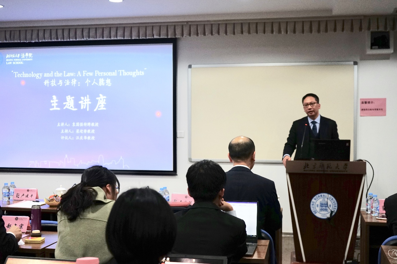稍作休息后,由袁国强特聘教授作了题为“Technology and the Law: A Few Personal Thoughts的主题讲座。袁国强特聘教授首先简要讲述了科技影响人类生活的时代大背景,以及新时期法律人面对新的科技发展形势的责任与担当。之后,袁国强特聘教授从虚拟货币、人工智能、数据安全等三个科技前沿领域作为切入点,剖析了在科技迅猛发展的形势下,相对滞后的现有法律体系所面临的困境与挑战。面对这些问题,他指出在保障科技创新发展的前提下通过法律对科技进行规制的重要性,强调了国际合作在处理科技与法律的关系中的关键作用。讲座结束后,汪庆华教授进行了精彩的评议,着重讲述了各大数据平台融入公共管理以及私人生活的现状,对法律所面临的巨大挑战做了全面深入的分析。