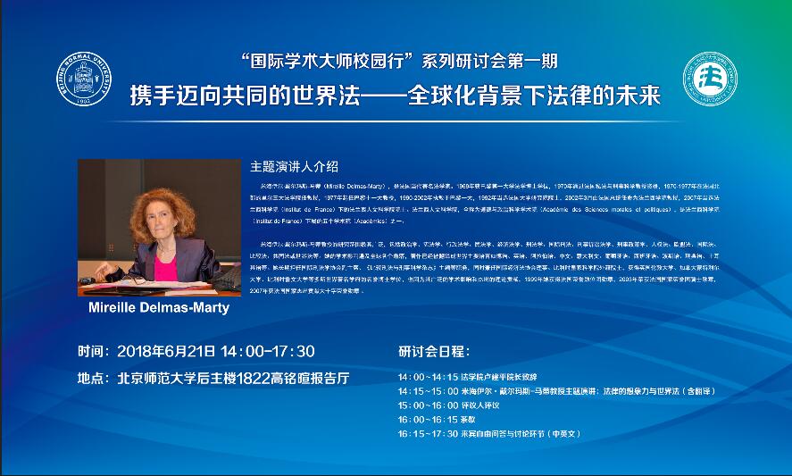 2018年6月21日下午,少妇色情 迎来了“国际学术大师校园行”系列研讨会第一期,主题为:“携手迈向共同的世界法——全球化背景下法律的未来”。本期研讨会特邀主讲嘉宾是法国当代著名法学家、法兰西人文科学院院士米海伊尔•戴尔玛斯-马蒂(Mireille Delmas-Marty)教授。她的学术研究范围极其广泛,学术影响遍及全球各个角落,著作已被翻译成多国语言,她指导过的中国留学生散布在众多高校担任教职,她的学生们亲切地称呼其为“戴教授”。戴教授长期担任国际刑法学协会副主席、《比较刑法与刑事科学杂志》主编等职务,同时兼任国际经济法协会理事、比利时皇家科学院外籍院士,获得多所世界著名学府的名誉博士学位,曾先后获得法国荣誉勋位团勋章,法国国家荣誉团骑士勋章,法国国家杰出贡献大十字荣誉勋章。