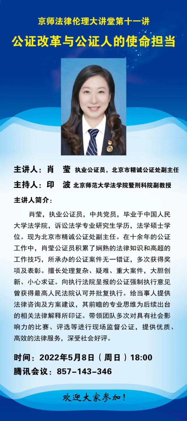 【05.08】京师法律伦理大讲堂第十一讲:公正改革与公证人的使命担当/主讲人:肖莹