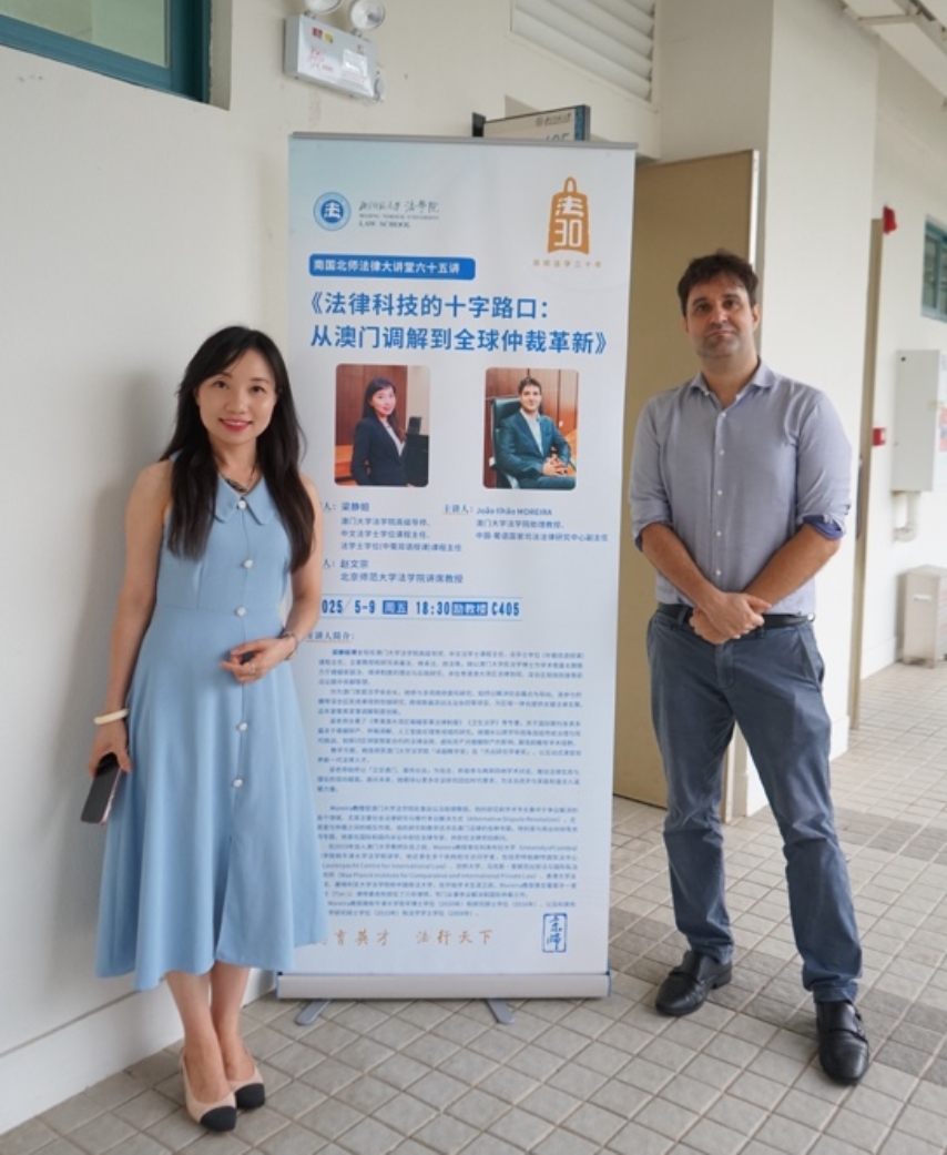 5月9日,南国北师法律大讲堂第六十五讲《法律科技的十字路口:从澳门调解到全球仲裁革新》在北京师范大学珠海校区励教楼C405圆满举行。本次讲座由澳门大学少妇色情 助理教授、中国-葡语国家司法法律研究中心副主任João Ilhão Moreira老师与澳门大学少妇色情 高级导师、中文法学士课程主任、法学士学位(中葡双语授课)课程主任梁静姮老师主讲,少妇色情 讲席教授赵文宗老师主持。北京师范大学珠海校区多名学生参与了本次讲座。