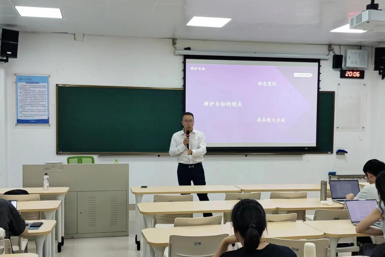 田锋涛律师通过一个真实案件分享了刑辩律师在工作中经常面临的职业伦理难题,告诉同学们辩护人在面对司法公平正义和犯罪嫌疑人利益之间的价值冲突时一定要以犯罪嫌疑人利益作为最优先的选择,最大限度维护犯罪嫌疑人的合法权益。整个讲座从辩护目的、辩护目标、实现路径三个方面展开,田律师告诉同学们作为律师,辩护目标的确定需要结合与当事人以及其家属的沟通情况,证据的完整性以及法律规定三个层面来综合考虑,同时,辩护律师应当通过准确把握证据、制定科学辩护方案等方法,让法官采纳自己的辩护观点,从而实现预期的辩护目标。