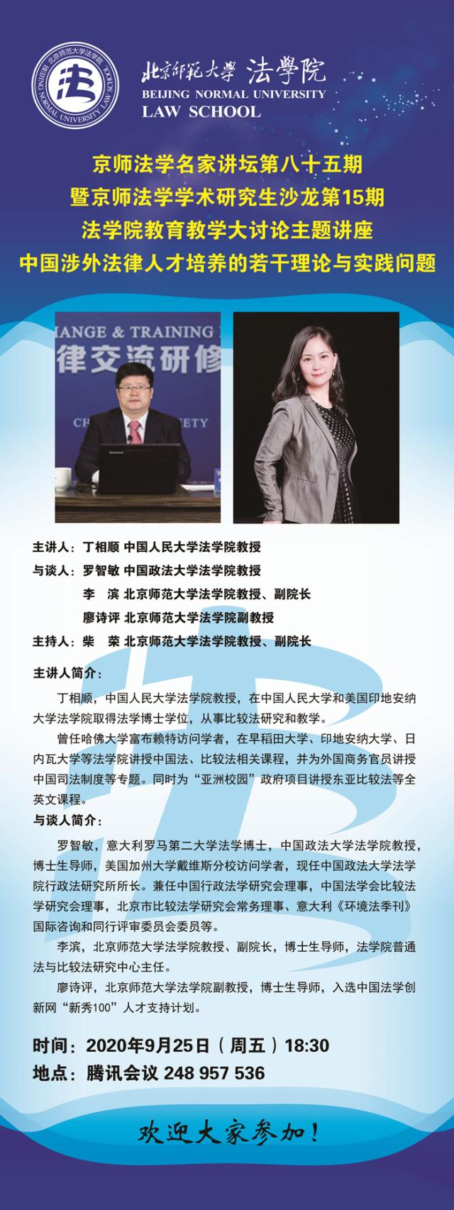 【09.25】中国涉外法律人才培养的若干理论与实践问题/主讲人:丁相顺