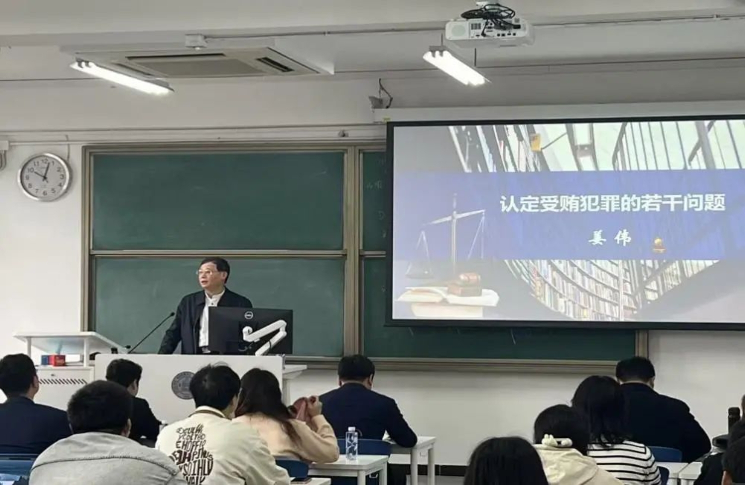 王秀梅教授首先对姜伟会长主讲此次的讲座表示感谢,向大家介绍了姜伟会长丰富的工作经历以及其在受贿犯罪领域取得的斐然成果,希望同学们认真学习,主动思考,就认定贿赂犯罪中的疑难问题形成自己的思考。