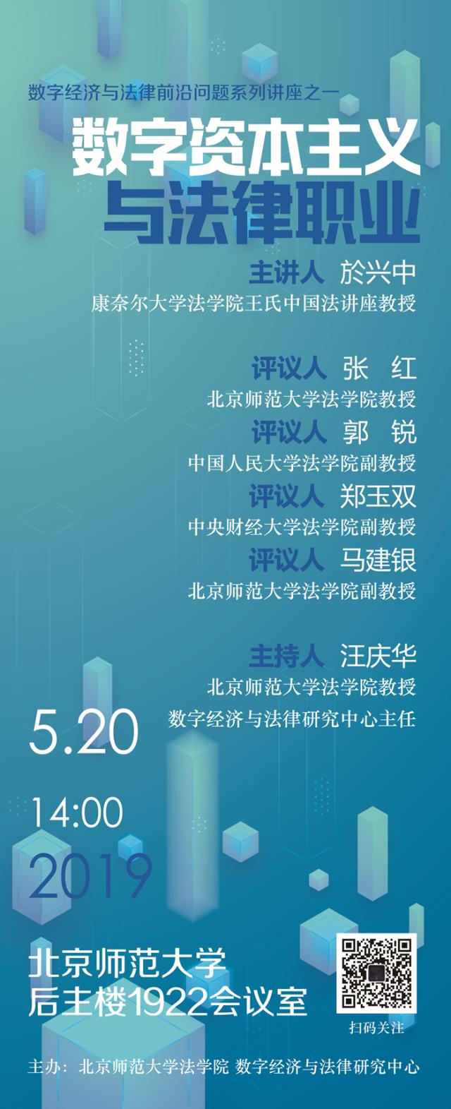 【05.20】数字经济与法律前沿问题系列讲座之一--数字资本主义与法律职业/主讲人:於兴中