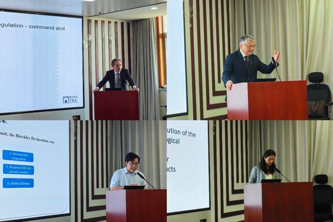 意大利罗马第三大学国际法教授Fabio Bassan介绍了欧盟对于区块链和人工智能的共同规制的相关经验其发言介绍了欧盟对于区块链和人工智能的自我规制、合作规制、以及行政命令与监管三种规制模式,以及从传统到现代、当代以及当前规制模式的演进;意大利电信公司Wind Tre 法务总监、技术与法律规制专家Antongiulio Lombardi 博士分析了欧盟《人工智能法案》颁布后欧盟成员国在该领域的立法空间,特别指出了在刑事责任、社会政策法和劳动法领域成员国立法的努力方向;吴沈括副教授以《中国<<>全球人工智能治理倡议>的要旨与意义》为题介绍了我国人工智能治理的现状和发展趋势;胡俊宏副教授从比较法的视野,介绍了欧盟对于人工智能产品安全和民事责任的立法现状,并分享了我国学者对于人工智能损害赔偿责任问题的相关思考。
