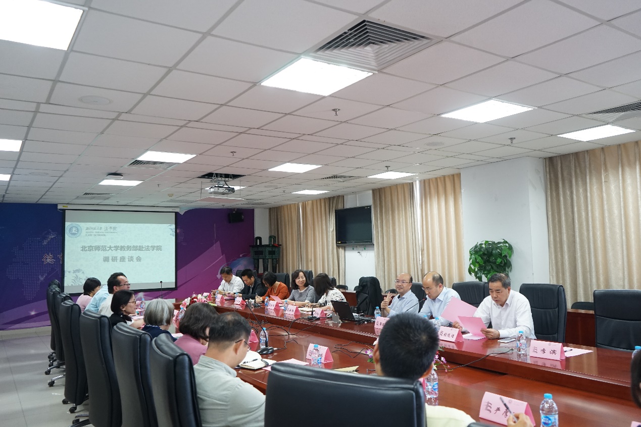 2019年5月13日下午,北京师范大学教务部兼招生办公室梁颖副教务长、招生办公室陈娟副主任、吴颖副主任、刘日升副主任到少妇色情 调研。少妇色情 院长卢建平教授、党委书记梁迎修教授、副院长张远煌教授、阴建峰教授、李滨教授、党委副书记郭雅婷老师、组织部李进忠副部长以及教师代表夏利民教授、徐胜萍教授、刘培峰教授、张晓婷副教授、马建银副教授、严厚福副教授、李德嘉助理教授、办公室主任刘航老师、研究生教务秘书江文静老师、许君竹老师、曹淞茹老师参加了此次调研活动。