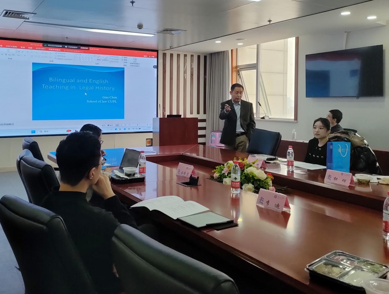 中国政法大学郭琛教授就法律史课程的英语教学问题发表了看法。郭琛老师认为,在法律史的英语教学中,要讲好法律史课程,需抓好两个方面,即知识和文化,这就需要对法律史内容的精准翻译,在翻译中既要让读者看得懂,又要将各国独特的法律文化恰如其分地表达出来。此外,郭琛老师还向大家推荐了两本外国法制史经典教材,一本是Law and Jurisprudence in American History 5th ed. 2003,另一本是『ヨーロッパ史のなかの裁判事例:ケースから学ぶ西洋法制史』2014ミネルヴァ書房。