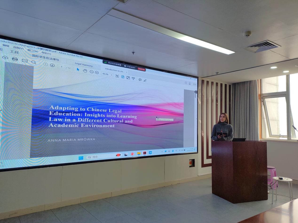 北京师范大学留学生Anna Maria介绍了她学习中国法律经历。Anna Maria先是回顾了自己在波兰、丹麦和西班牙学习和研究法律的学术历程,随后指出自己来中国学习法律的原因,她认为学习中国法律能够让自己有机会了解一个由文化、社会和历史背景塑造的完全不同的法律体系,能够让自己沉浸在全球视野中去学习和研究法律。西方法律注重个人权利,而中国强调集体和谐和社会稳定,这使其成为一个迷人的研究领域,未来Anna Maria将会持续克服语言和文化差异的阻碍,不断融入到对中国法律的学习中去,使自己获得成长。
