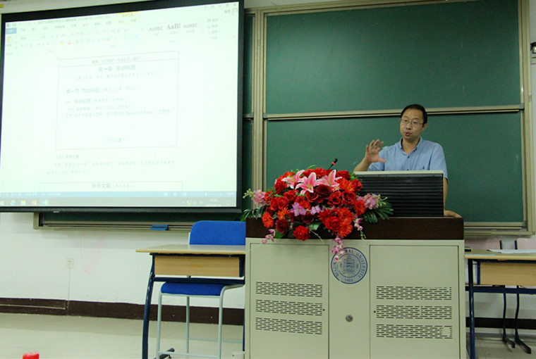 马建银副教授向同学们讲解法律硕士学位论文开题的工作安排并对开题报告、论文规范、引注规范等做详细讲解。他强调在进行论文写作的同时应特别重视论文写作上的形式规范及美观。