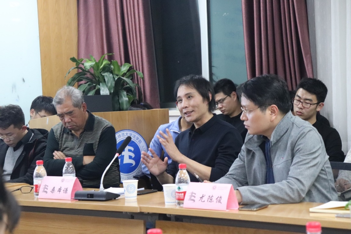 接着,梁迎修教授、郭殊副教授对于讲座内容,结合自己的专业方向和学术涉猎提出了自己的见解。梁迎修教授表达了自己对法经济学分析的兴趣,并表示目前法教育学是研究法学的主流方式,统计学融入法学研究仍是一个漫长的过程,而研究方式的竞争更多地取决于受众的认知形式。