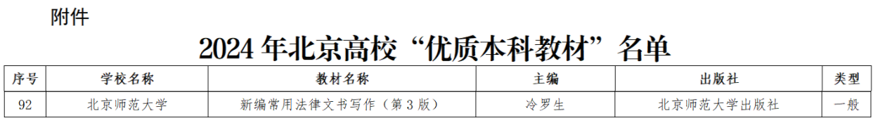 冷罗生教授主编《新编常用法律文书写作(第3版)》,北京师范大学出版社2023年版。