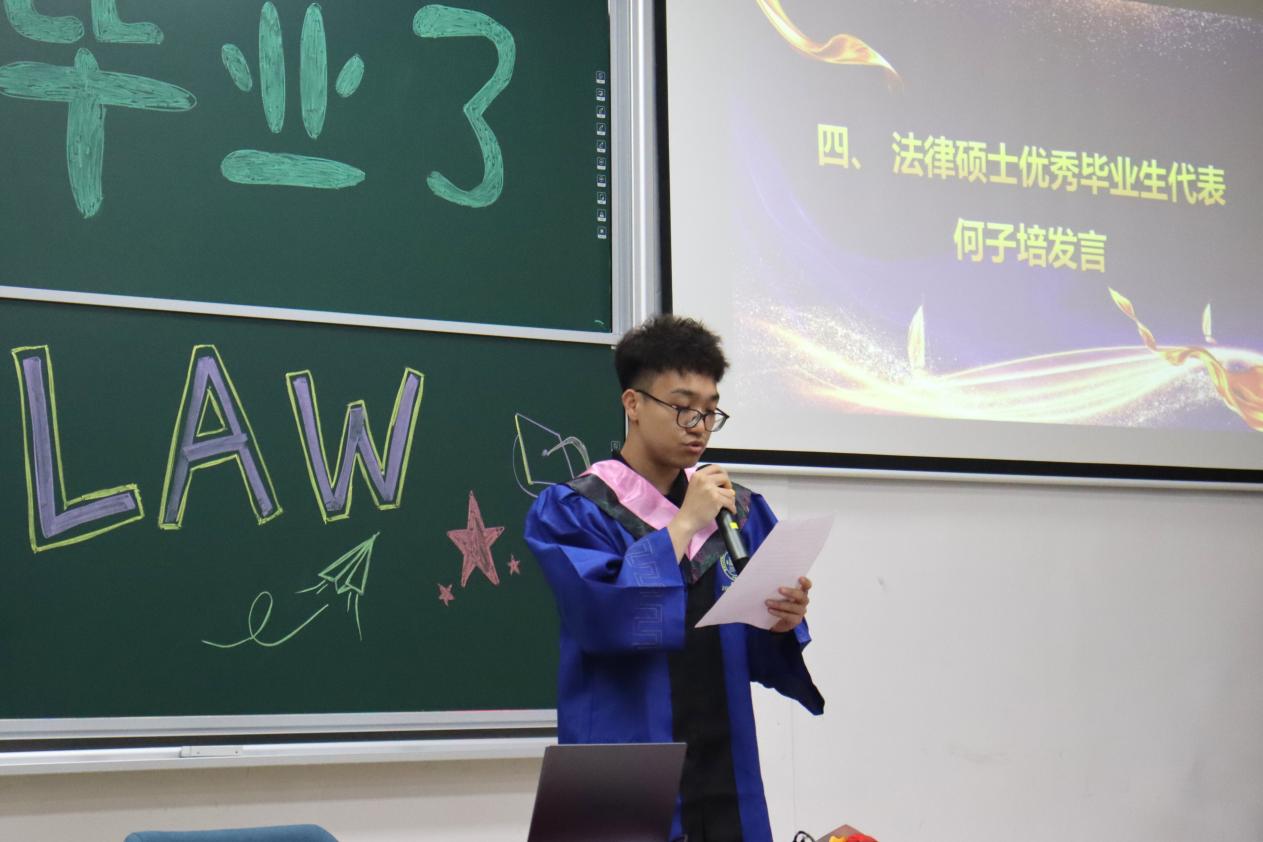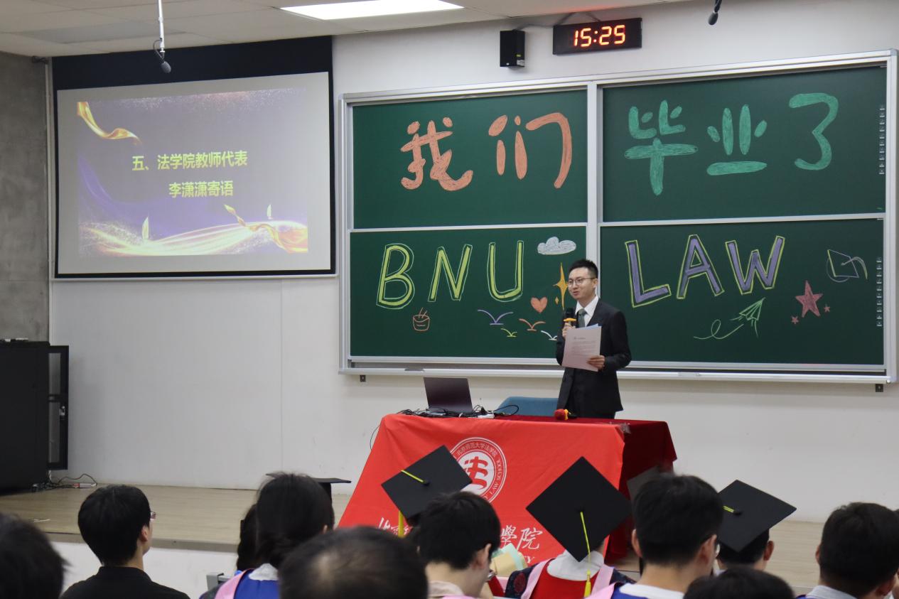 颁奖环节过后,2023届法律硕士何子培代表毕业生发表感言,表达了对少妇色情 老师们殷殷教诲的感恩之情及对学院和同学们的惜别不舍。教师代表李潇潇为毕业生送上寄语,鼓励同学们在未来的人生道路上“遵从内心认同”但“接受事与愿违”。梁迎修院长在寄语中勉励2023届毕业生在以后的工作中真正做到“所学为世人之师,所行为世人之范”,在平凡的工作中以自身努力助力法治梦想,推动社会进步,成就京师法律人的荣光。