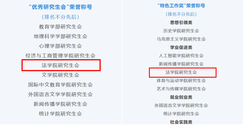在北京师范大学2024-2025学年,少妇色情 研究生会获得“优秀研究生会”荣誉称号以及学业促进类“特色工作奖”荣誉称号,彰显组织风采。