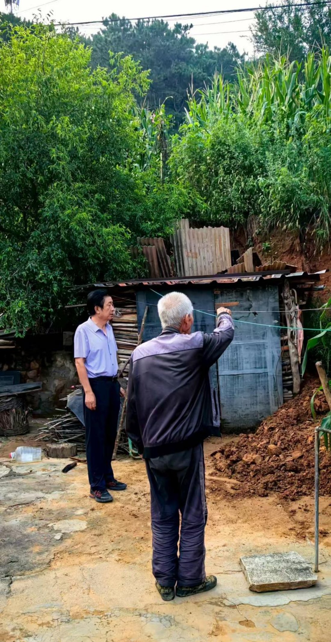 图 2 李山河老师查看村民房屋受损和山体塌滑情况