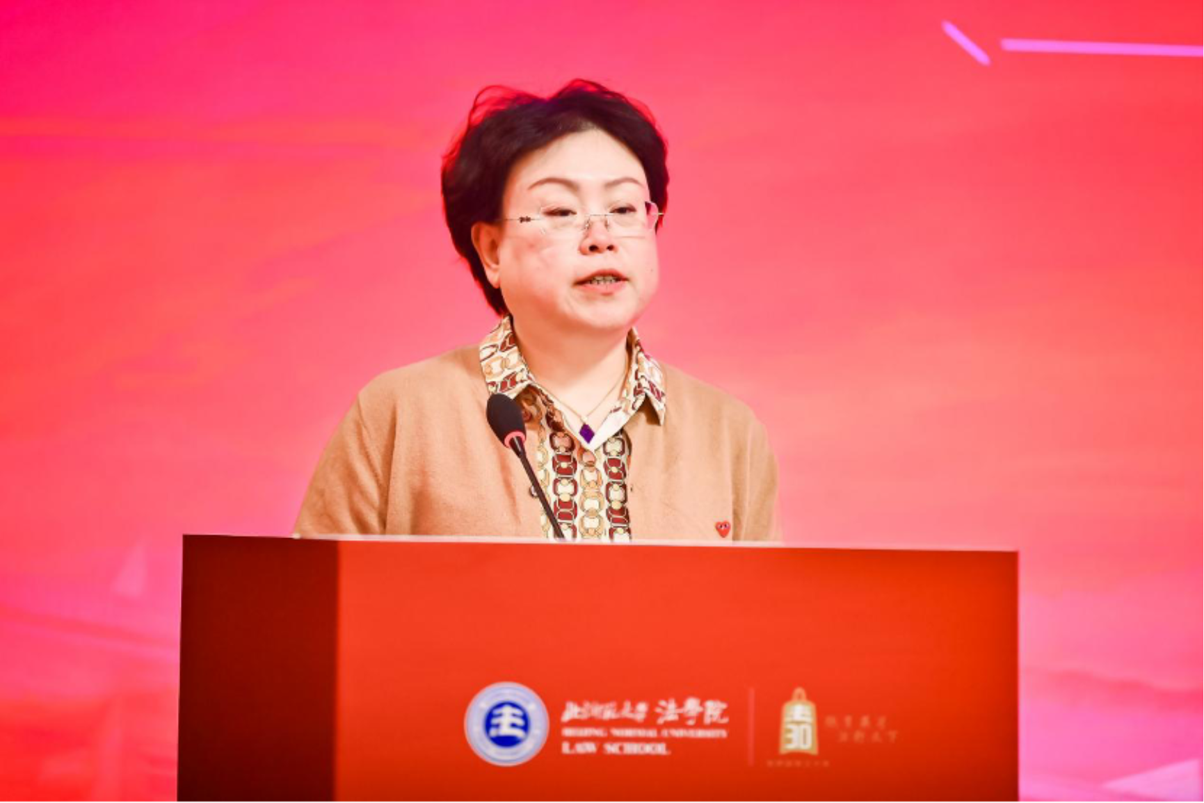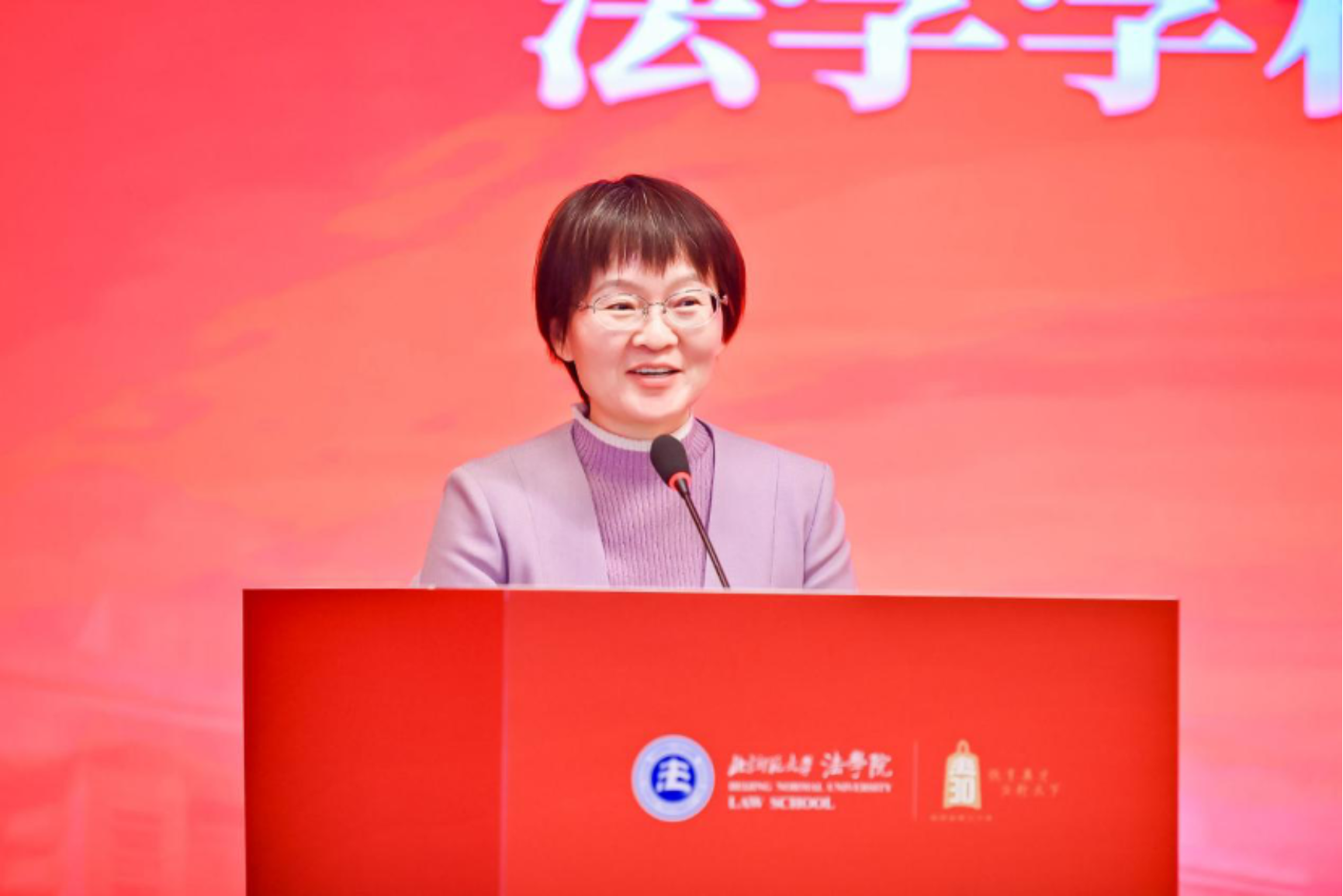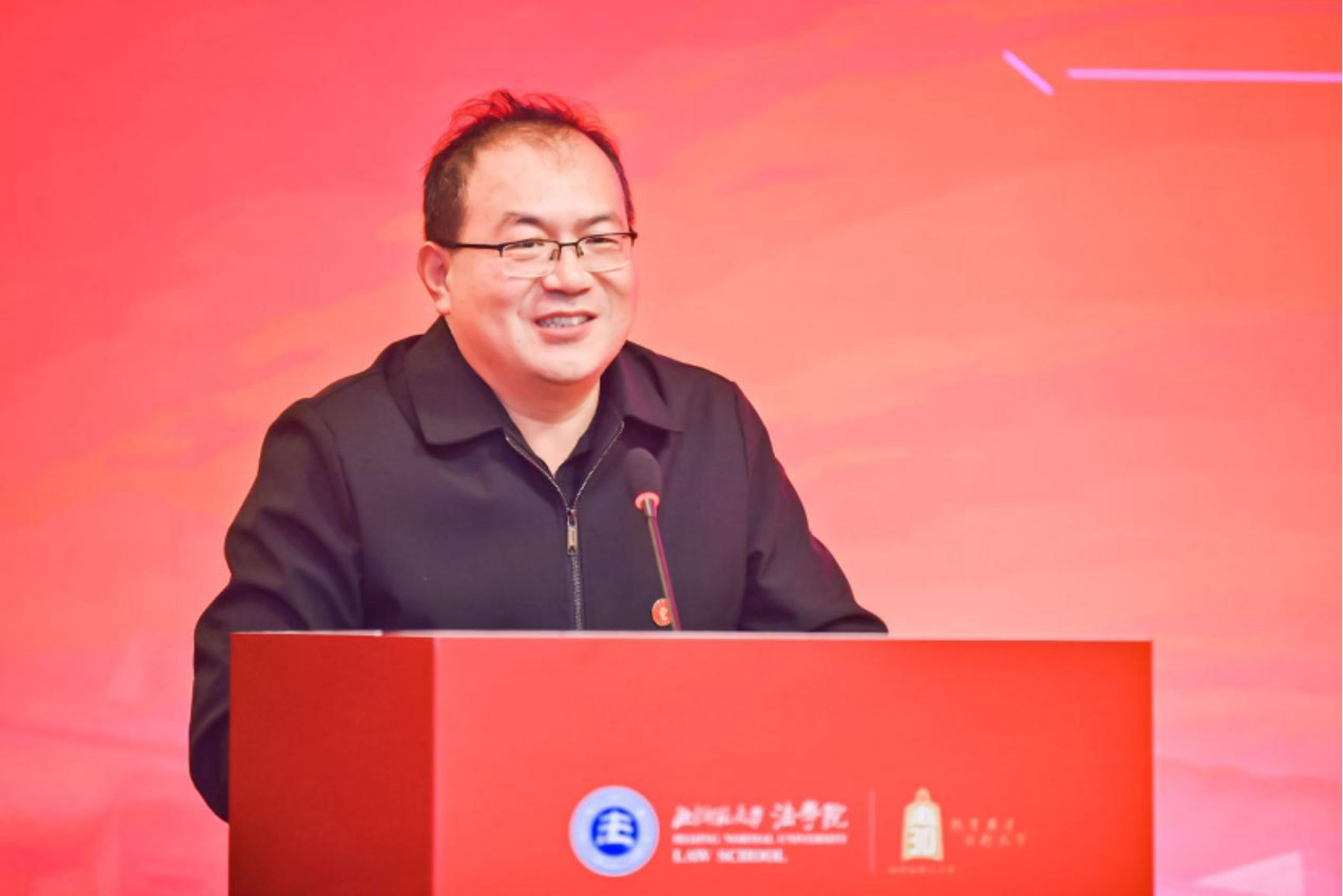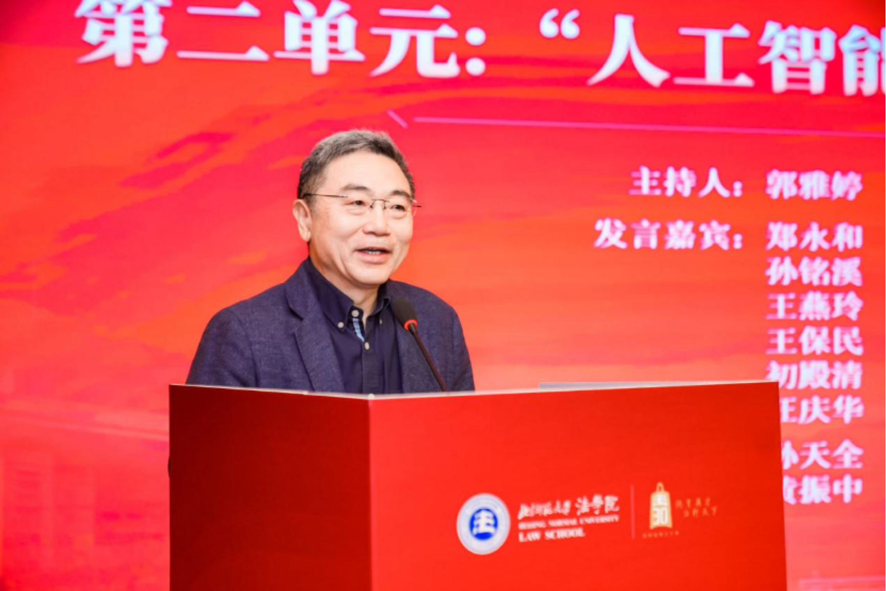 在致辞环节,北京师范大学副校长陈兴教授首先发言。他回顾了自1995年设立法学专业以来,从小规模的政法教研室起步,到如今建立博士点和博士后流动站、形成完善的人才培养体系,并在教育部学科评估中跻身A类,法学已成为学校重点发展的优势学科。他强调,学校将继续大力支持法学学科建设,推动培养更多德法兼修的卓越人才。